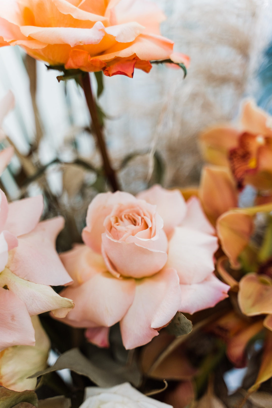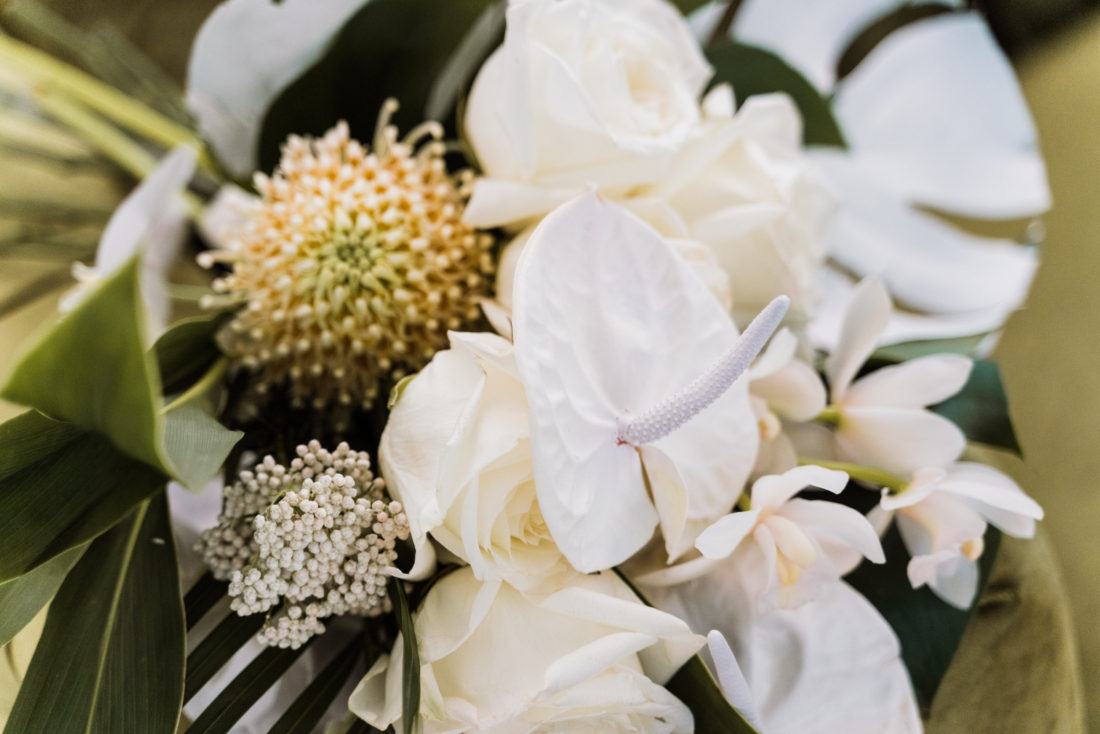 A beautiful blush and white bouquet done a little differently with the use of lush snowball Chrysanthemums and modern white anthuriums. PHOTOGRAPHY a little bit photography / FLORALS a little bit floral / VENUE Mayfair Hotel / HAIR AND MAKEUP Lucy Paige / VEILS + DRESSES Sarah Stoute / MODEL Harriet Lord