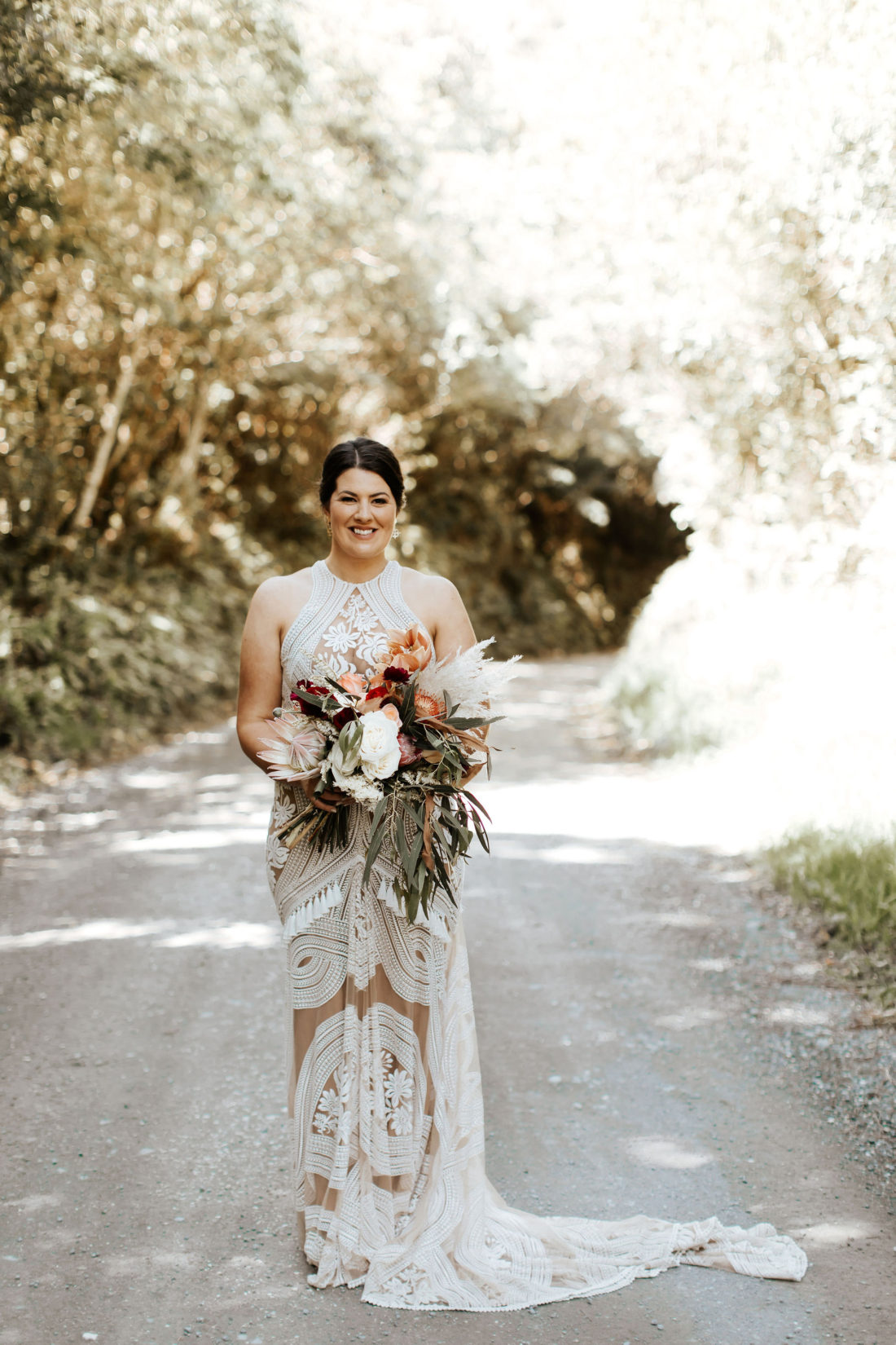 A whimsical dried floral assortment which included roses, smokebush, celosia and gypsophila set the scene for a golden hour photo session at the magical Piha Beach. FLORALS a little bit floral / PHOTOGRAPHY + PLANNING Hours Studio / VENUE Piha Beach
