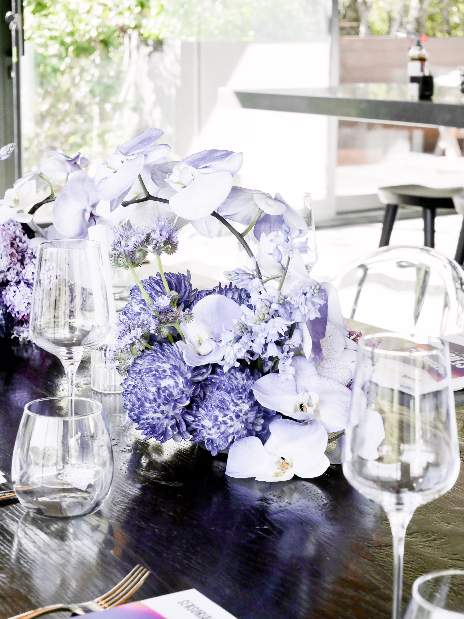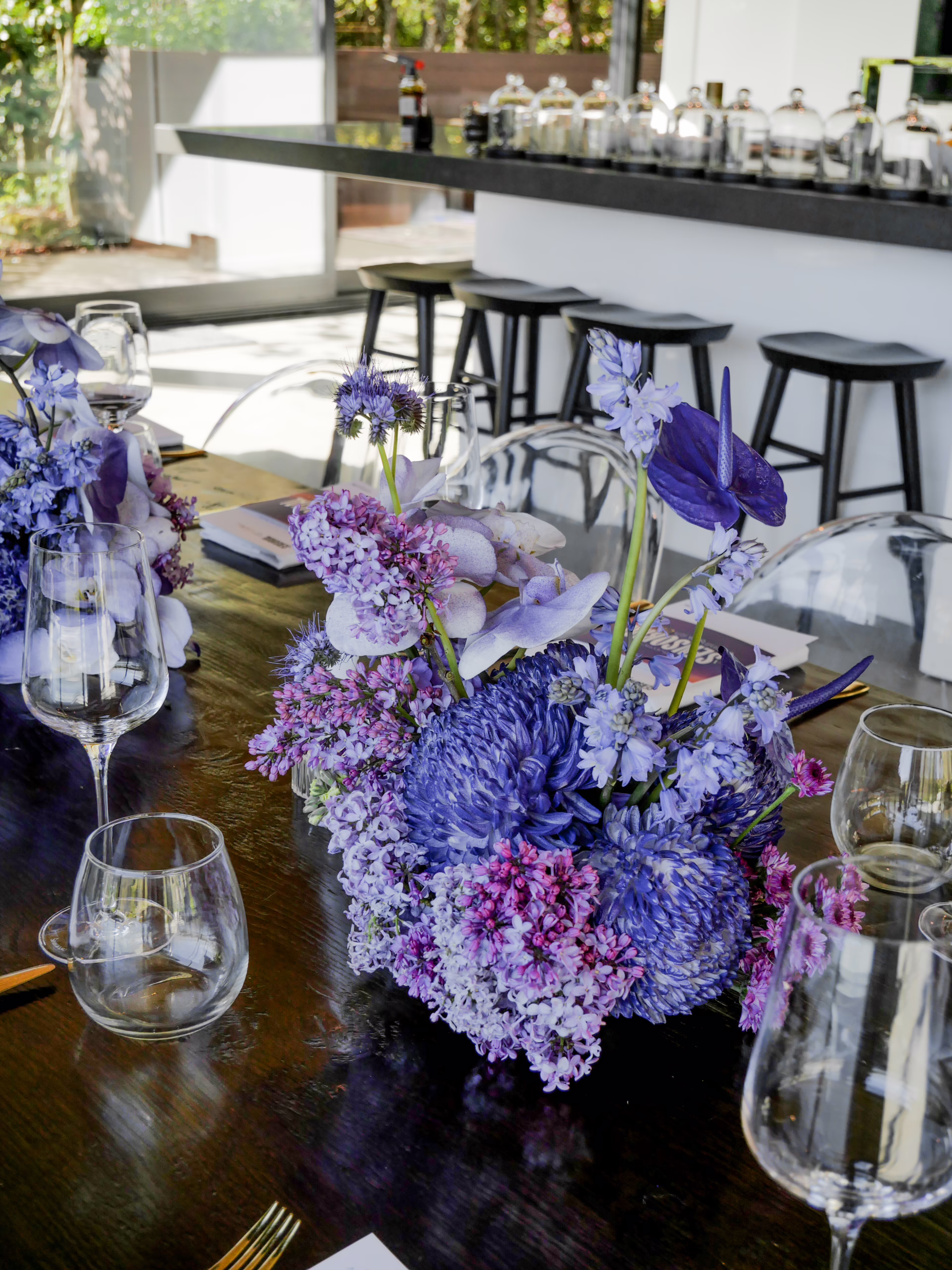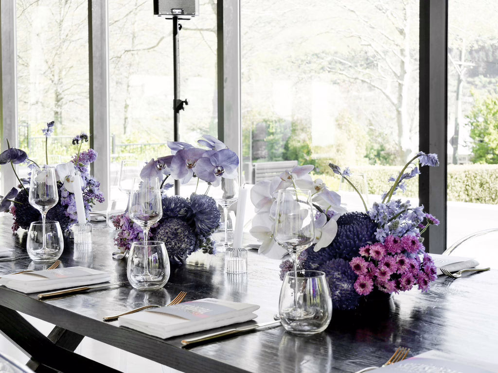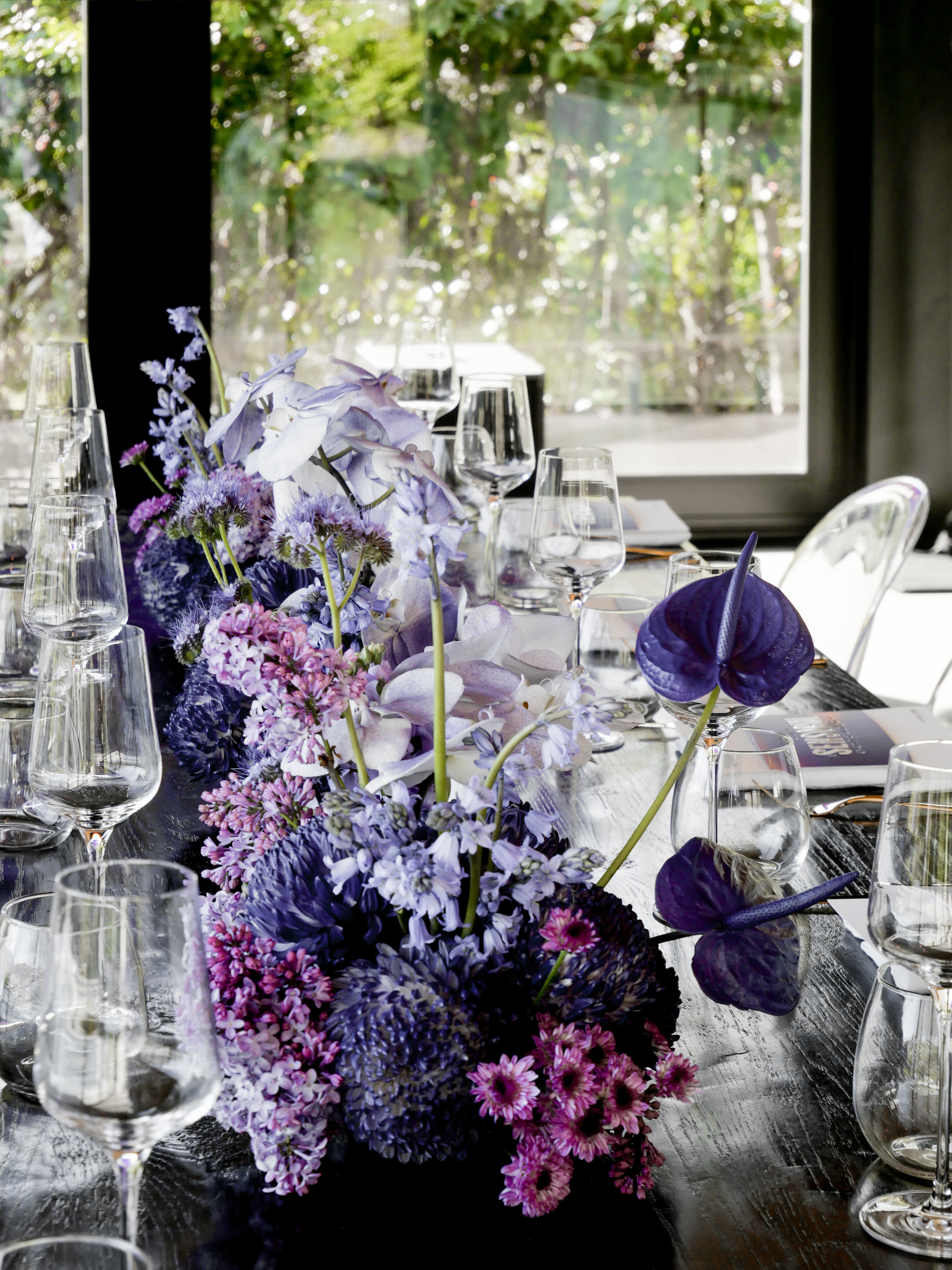 For Cadbury’s executive dinner, we drew inspiration from the iconic Dairy Milk purple, reimagining it through a refined floral palette. Layers of lilac and Stock brought softness and fragrance, while  Snow Down Chrysanthemums were sprayed to capture that famous signature rich hue. To elevate the setting with a sense of theatre, sculptural phalaenopsis orchids were also sprayed purple, creating a striking focal point.