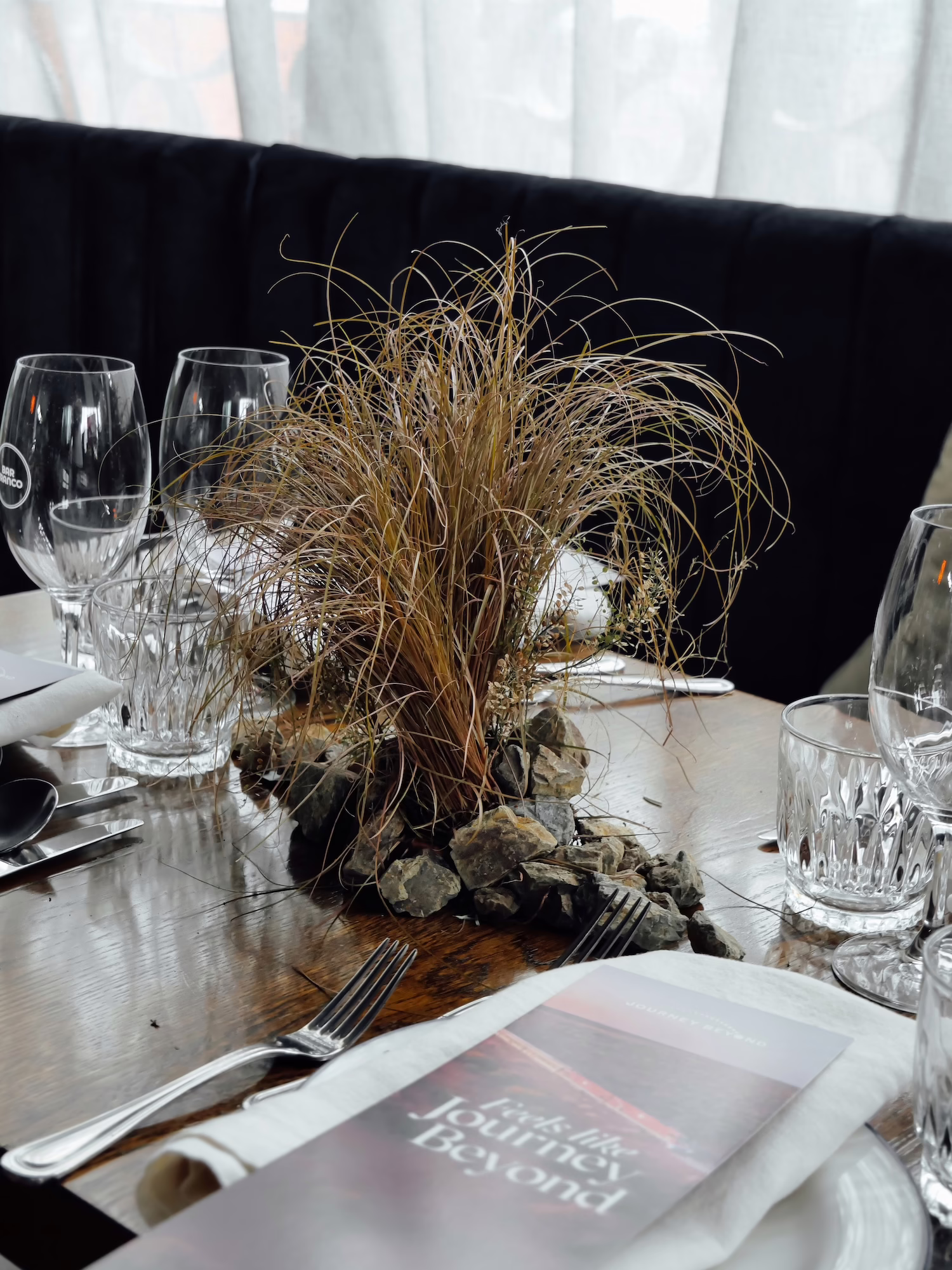 For Journey Beyond’s dinner at Bar Franco, we created a warm, Australian-inspired setting using a rich mix of native florals. Banksia, leucodendron and gum brought texture, depth and a natural, earthy palette to the space.