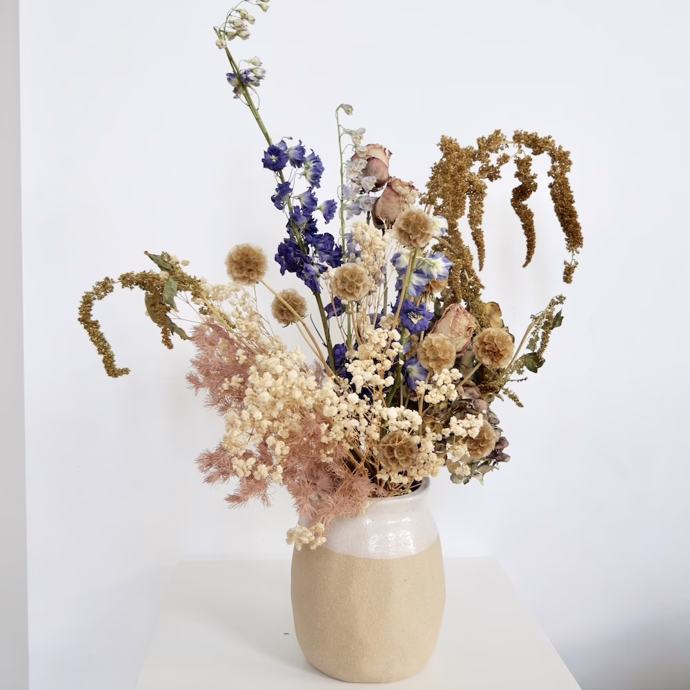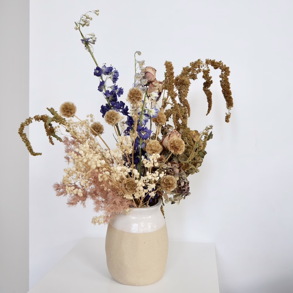 Our dried flowers will last for years provided they’re kept out of direct sunlight and kept dry. Because they are a natural product, you can expect some change in colour over time.