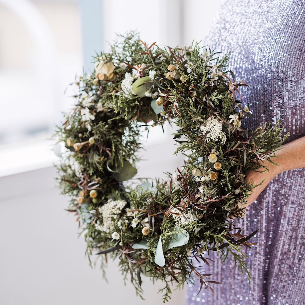 Order your christmas wreath to send anywhere in Christchurch, or pick up in Sydenham from the store. This is a fresh foliage wreath in a floral foam base allowing you to water and keep it fresh through December. Hang on your front door or add a candle in the middle for the most beautiful table centrepiece. These will last a couple of weeks before drying beautifully through to Christmas.