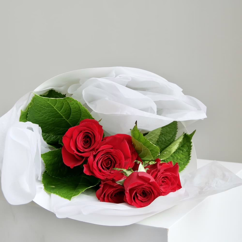 1/2 DOZEN RED ROSES IN WHITE WRAP