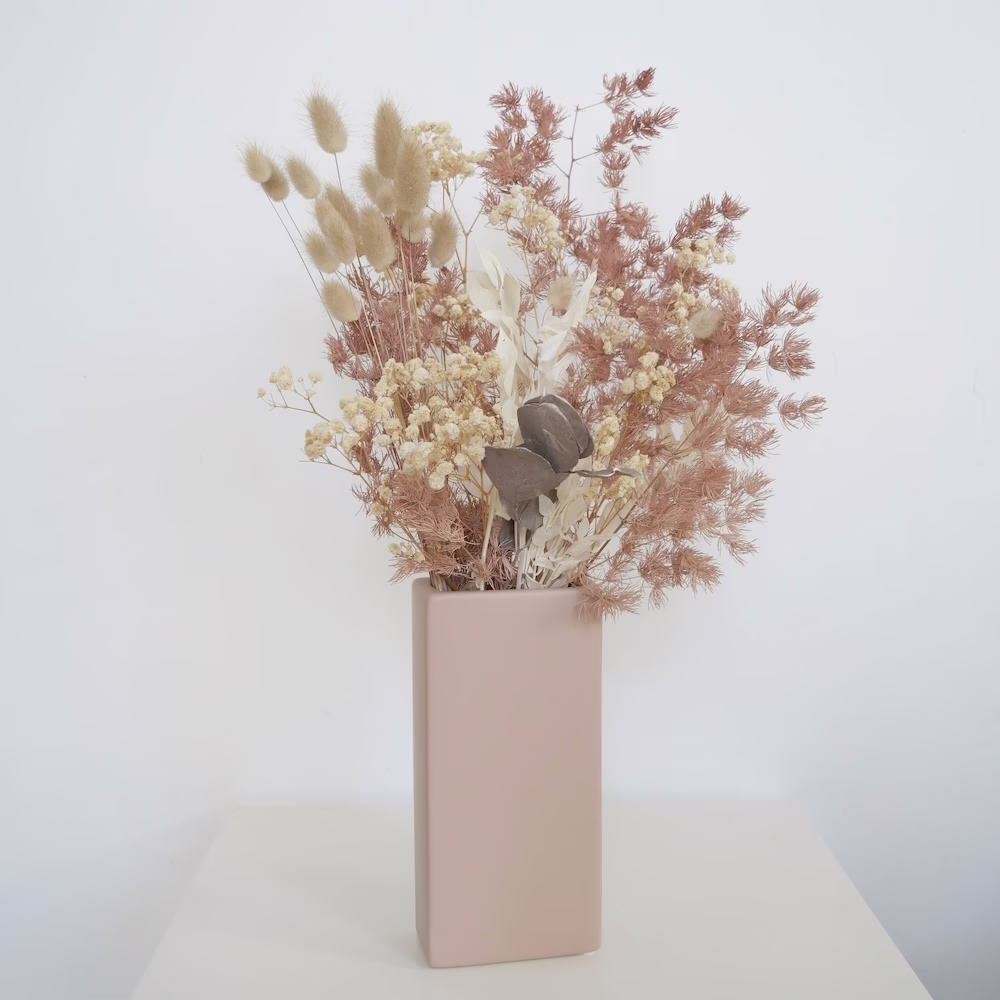 Preserved Ming Fern, Gyp and Bunnies in 20cm blush ceramic vase.